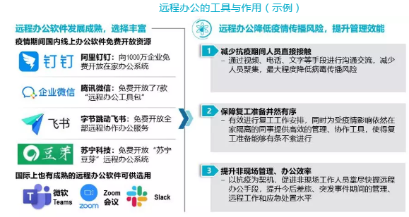 化工企業(yè)的遠(yuǎn)程管理和辦公能力有所不足,普遍反映在較少使用遠(yuǎn)程辦公工具或者不能以合適的方法通過遠(yuǎn)程辦公工具,無法對(duì)于現(xiàn)場(chǎng)生產(chǎn)和項(xiàng)目運(yùn)行進(jìn)行有效管理,造成在抗疫以及隔離期間、生產(chǎn)人員工作效率低、管理人員的管理有效性低的問題。因此,我們建議化工企業(yè)在疫情持續(xù)期間,熟悉掌握遠(yuǎn)程辦公信息化工具的使用,提升遠(yuǎn)程管理能力。