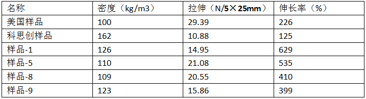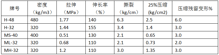 典型的幾種微孔軟泡片材的物理性能(以poron為例)