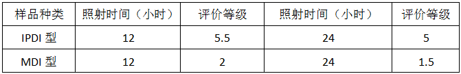 從上表的測試結(jié)果就能看出脂肪族異氰酸酯泡沫的耐黃變性能是比較優(yōu)秀的。