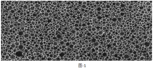 這里需要說明的是微孔泡沫不是指的微孔PU彈性體(如鞋底、鞋墊、高鐵墊片、輪胎、汽車彈簧之類的泡沫),而是一種柔軟的高密度的聚氨酯泡沫片材,是屬于特種聚氨酯軟泡,比較典型的泡孔結(jié)構(gòu)如圖-1。