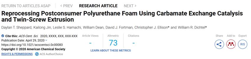 在本篇文章中,研究人員成功證明了通過引入DBTDL為催化劑來使PU熱固性塑料進行再加工處理,使用工業(yè)上的雙螺桿擠出技術有效地從PU泡沫中除去空氣,從而對PU泡沫進行再加工,并證明了這種再處理方法對市售PU泡沫的適用性。我們相信,這項技術不僅能夠將各種PU廢料回收再處理成高價值的材料,為工業(yè)界對PU泡沫廢料的回收利用鋪平了道路,而且將極大地激發(fā)其他市售工業(yè)材料的回收利用!